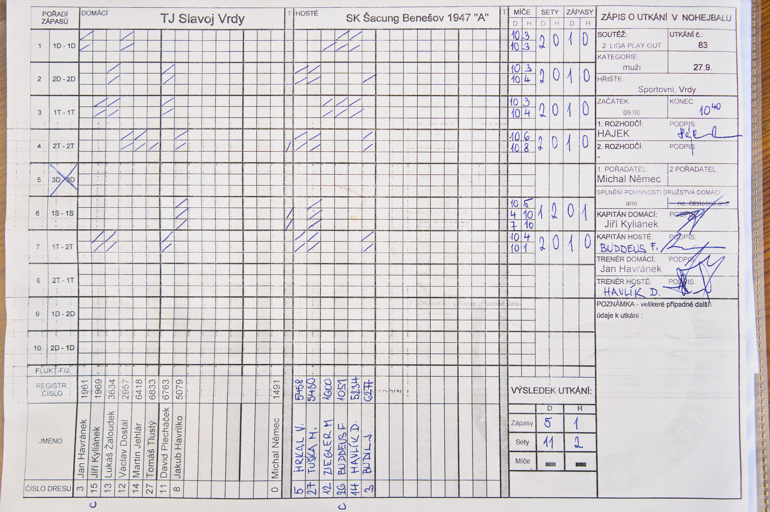 I k zápasu u nás přijel soupeř v nekompletní sestavě bez důležitých opor - především obou Fürbacherů. A tak jsme v celkem pohodovém tempu dokráčeli k výhře 5:1 a zakončili tak kolísavou sezonu tim nejlepším způsobem 🙂 Naše výkony v závěru sezony gradovaly a proti Šacungu jsme odehráli vydařené utkání! Děkujeme fanouškům za podporu a těšíme se zase příští rok 🙂